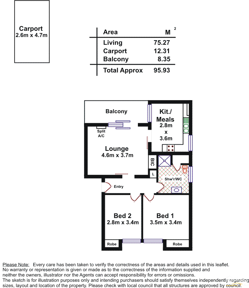 Secure keyed entry and intercom2 spacious bedrooms with BIRsLight-filled lounge with access to private balconyKitchen and meals with ample bench space and cupboardsBathroom with laundry facilityHeating and cooling - R/C A/CCarport