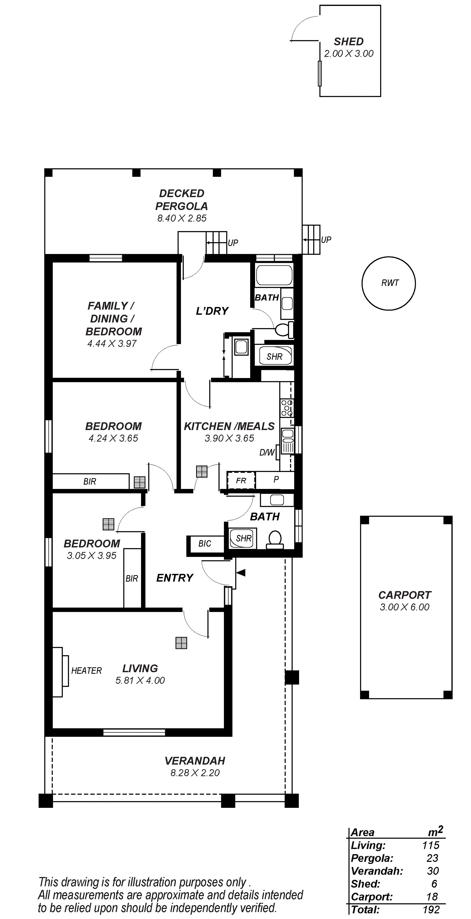 Outdoor entertaining area features superb timber decking. Rainwater tank, carport and garden shed.