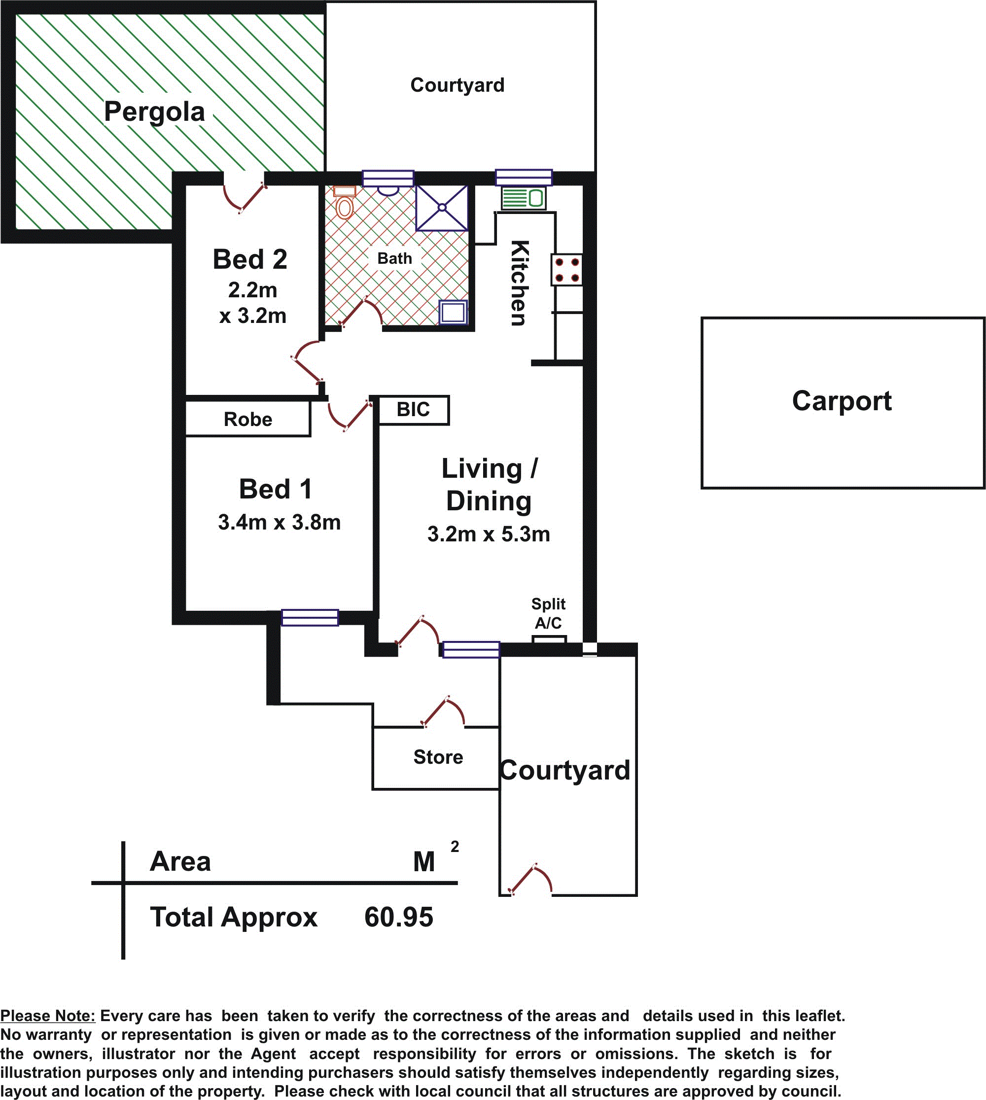 Well maintained gardensPrivate and secure groundsSecure storage Combined bathroom and laundry Floating timber flooring throughoutReverse cycle, split system air conditioning systemPrivate second courtyard with second bedroom accessDesignated carport