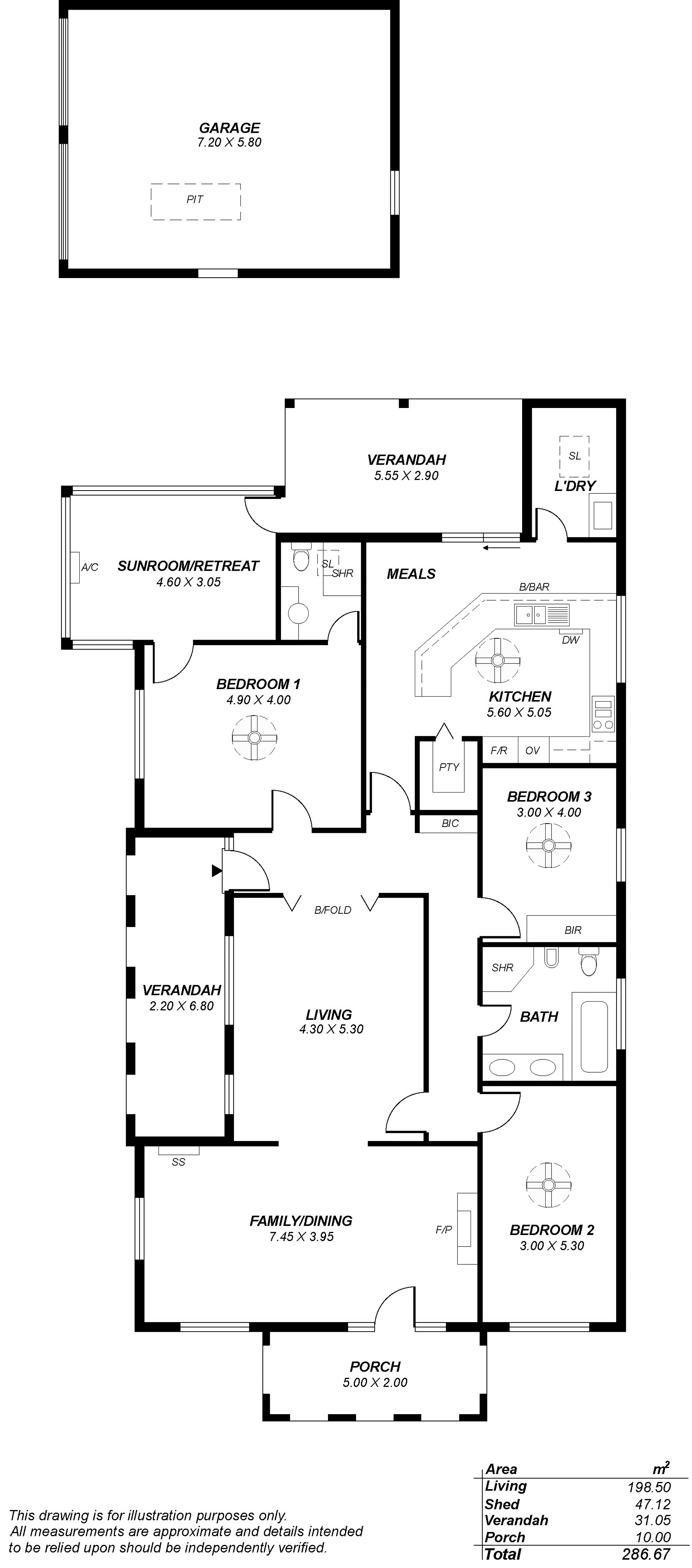 Separate laundry, extensive verandah.