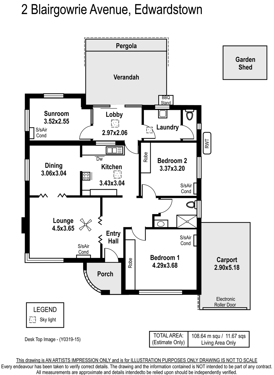 Sunroom with split system air-conditioning plus separate laundry and 2nd toilet.