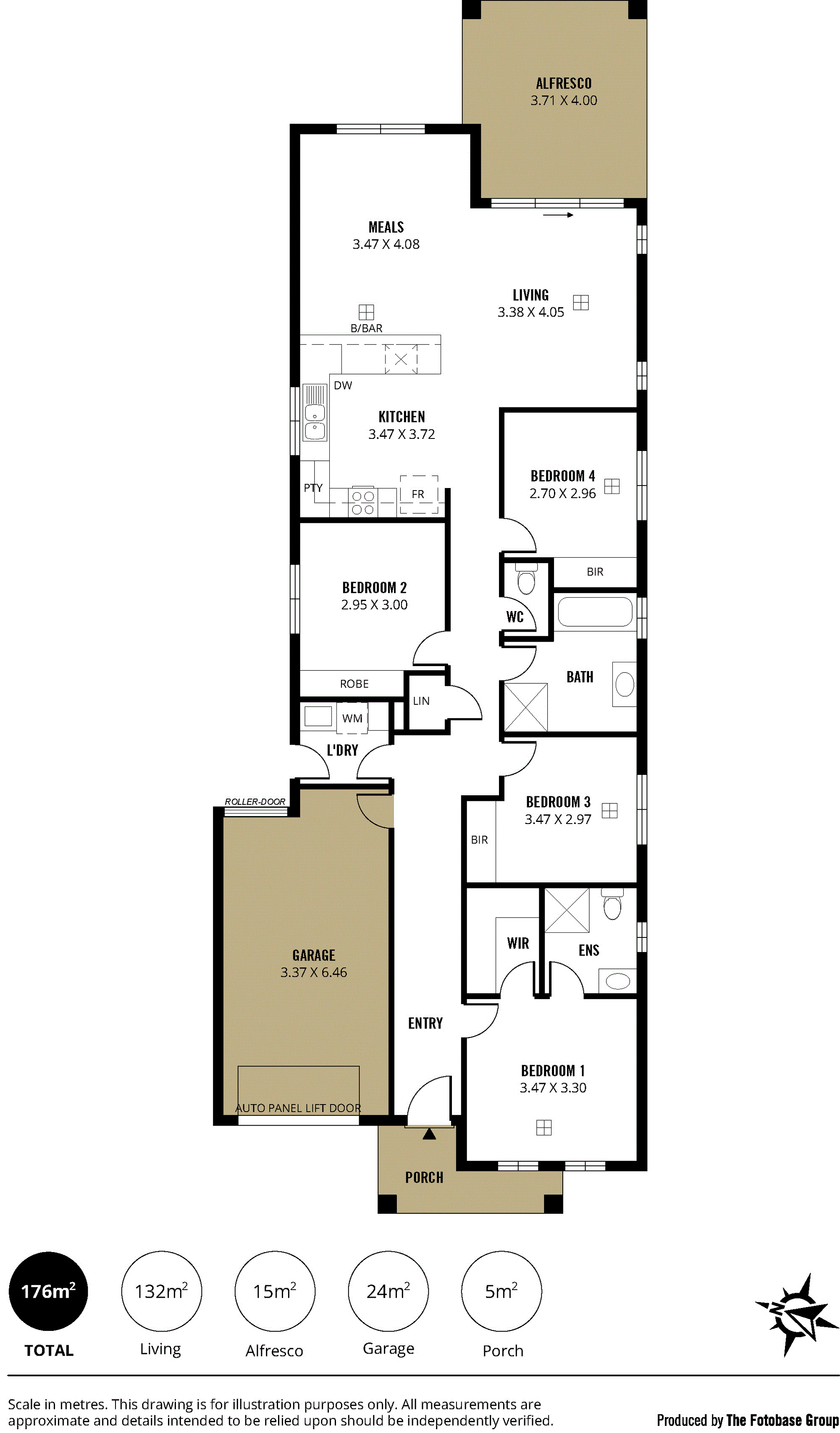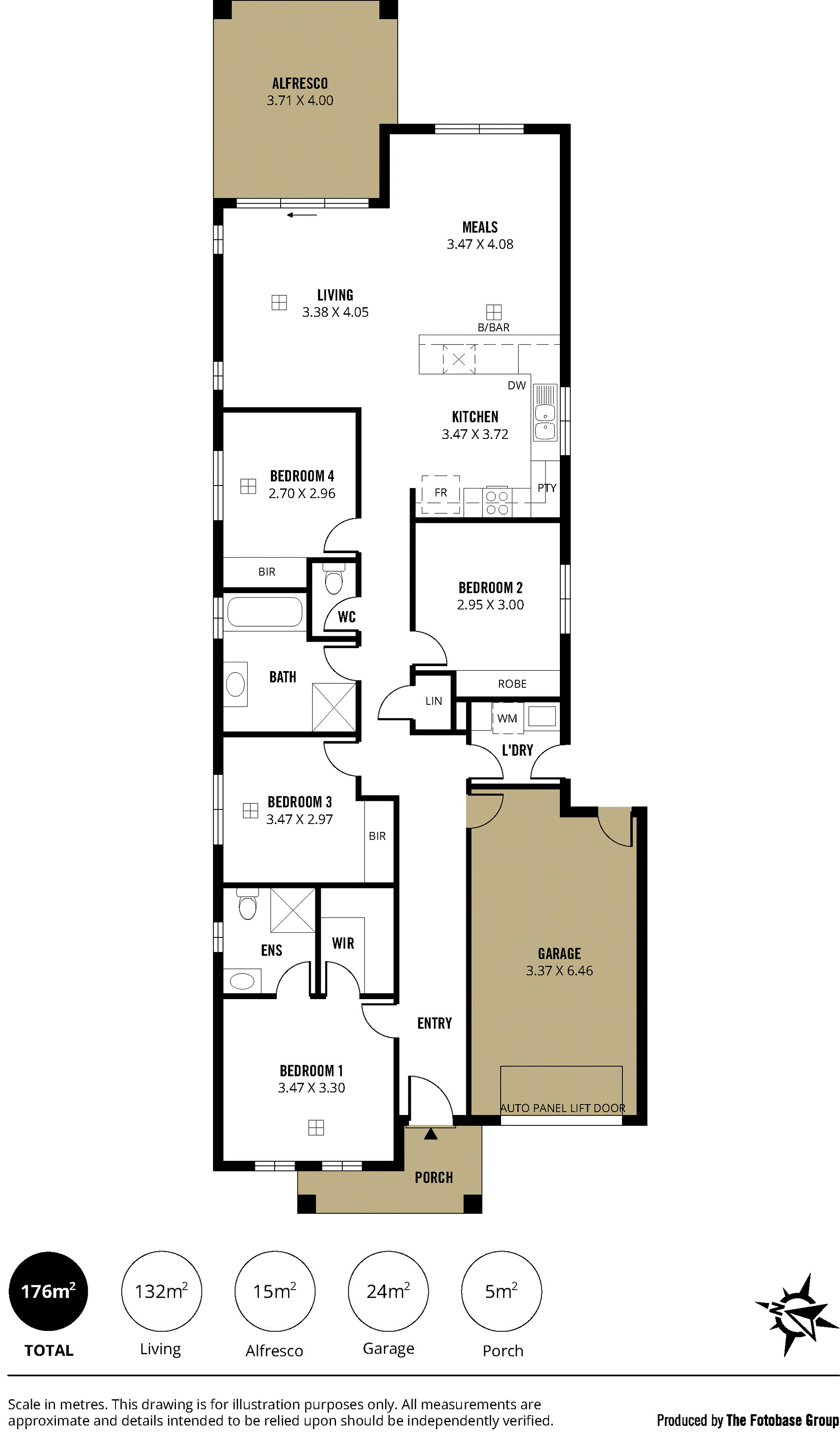 Features include four bedrooms (main has WIR and ensuite bathroom) built-in robes in other bedrooms.